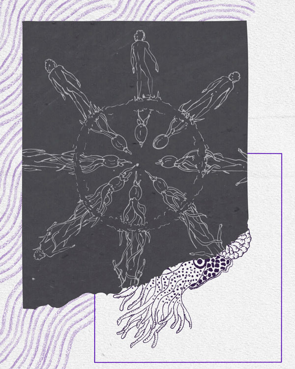 Para Cantos Abisales, hemos imaginado un recorrido que se desprende de la obra teatral Marea Magdalena, creación autoficcional de la dramaturga caleña María Alejandra Morales con quien trabajamos la música de su montaje en el 2023. La obra es sobre una niña poseída por el deseo de ser río.